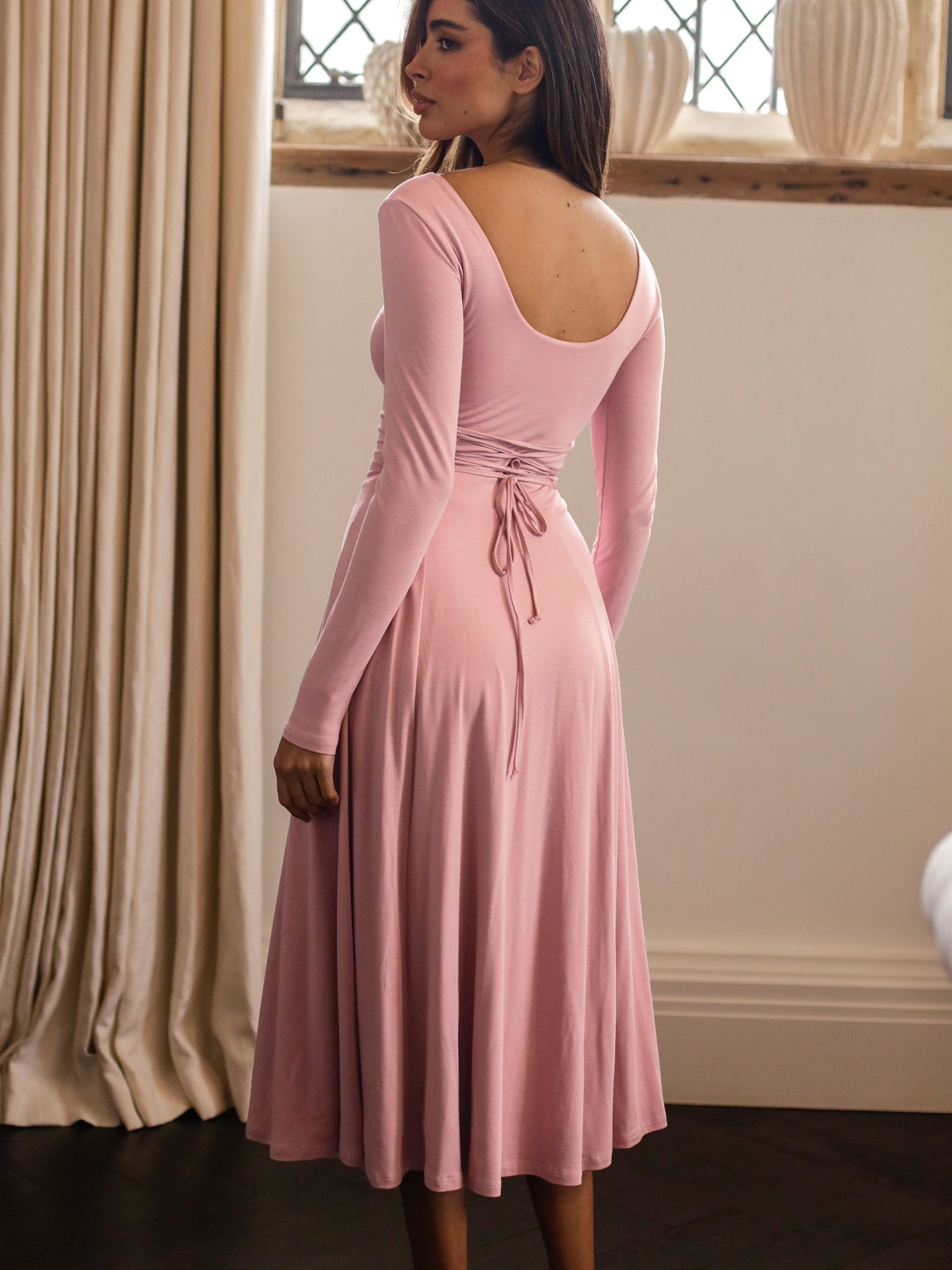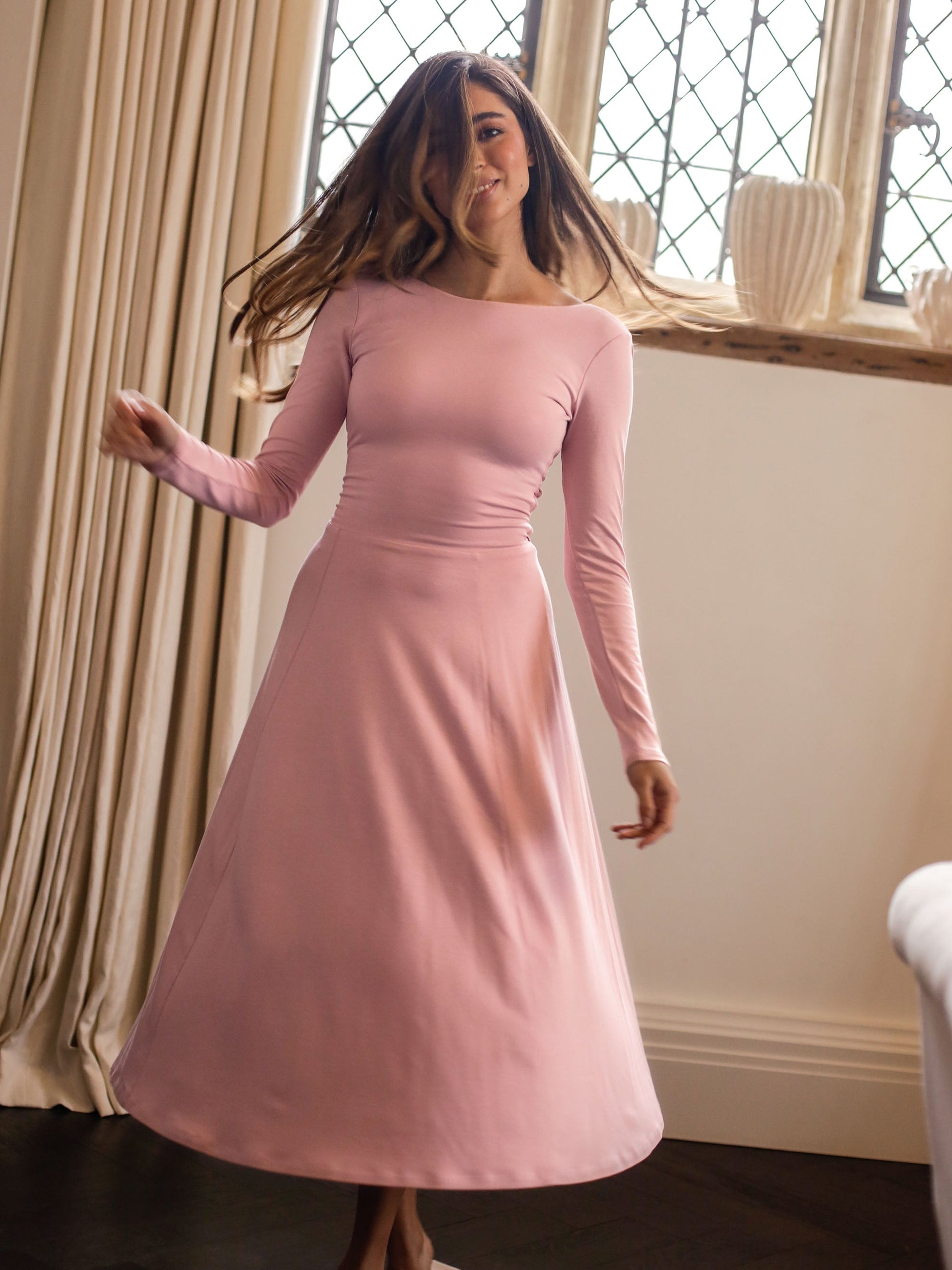 The Iris Midi Dress is crafted from luxuriously soft, organic bamboo fabric. A corset-style waist creates a flattering silhouette and the double-layered skirt and body lend timeless elegance while providing a weightless feel that ensures effortless movement. The perfect classic dress with a timeless aesthetic.