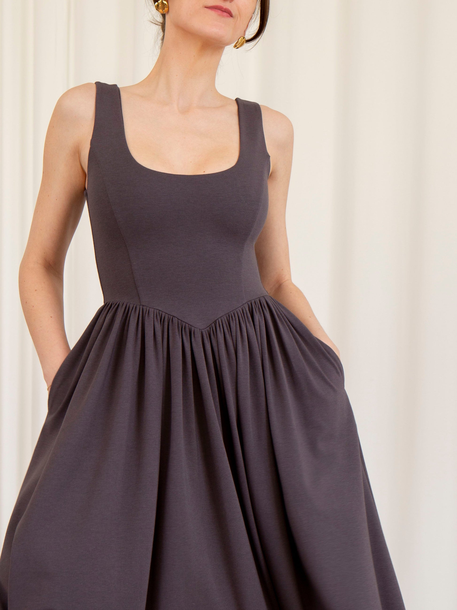 Silhouette of dreams, Isabella had us at hello. The double-layered bodice smoothly caresses your curves with princess seamlines to the bust, and down to the waist, juxtaposed with gathers that bring texture and fullness to the skirt. Where we can, we always will - pockets are hidden in the side seam. Invisible zip at the back to close. 'Hello, Isabella.'