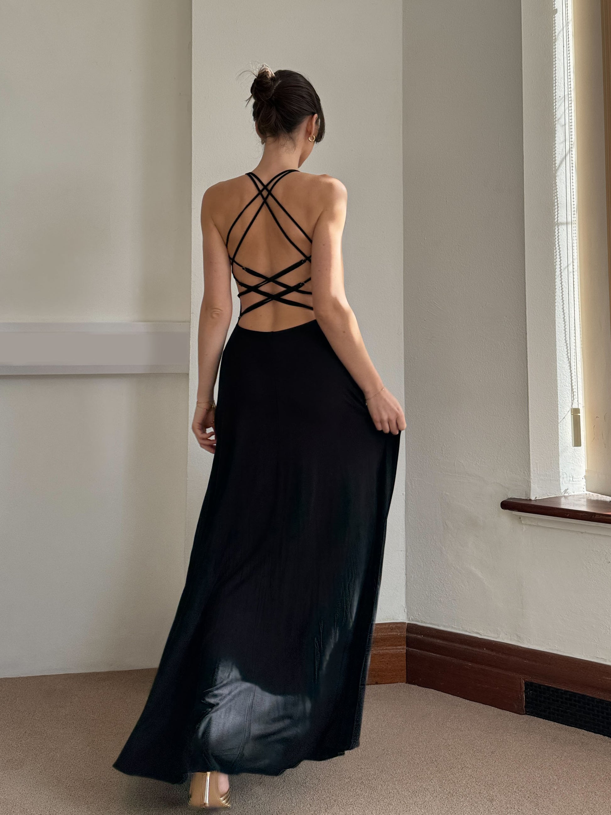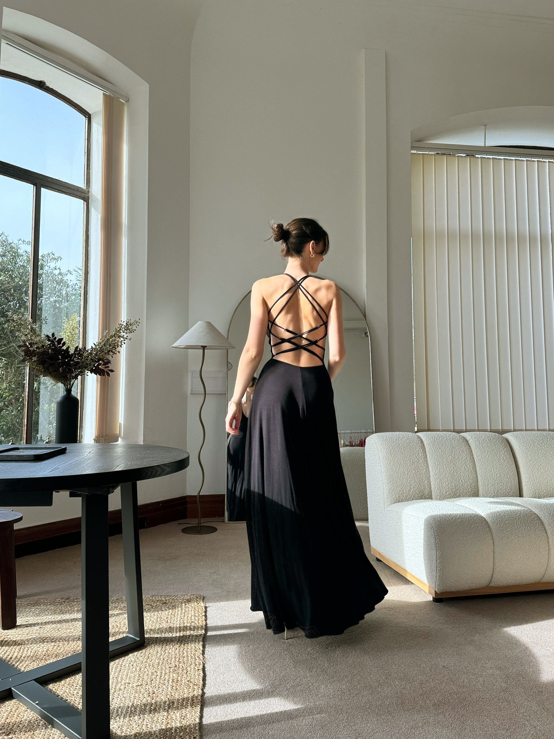 Nova is the statement dress of the season in the most dazzling of blues, or wintery wine red to stand out for any occasion. The crisscross straps at the back are fully adjustable, so not only create a star-like detail to the open back but also tightens the dress to provide support. She's (super) Nova!